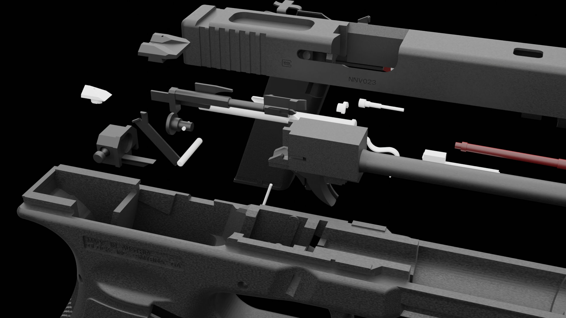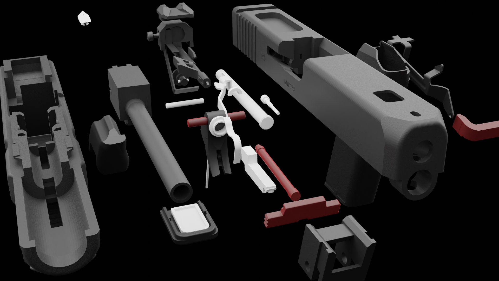 This model replicates the Glock 44, the first .22 LR caliber pistol from Glock. Built on a compact G19 frame, this 3D printed version captures the sleek Gen 5 ergonomics, including the ambidextrous slide stop and flared magazine well. A perfect piece for displaying the capabilities of modern FDM printing