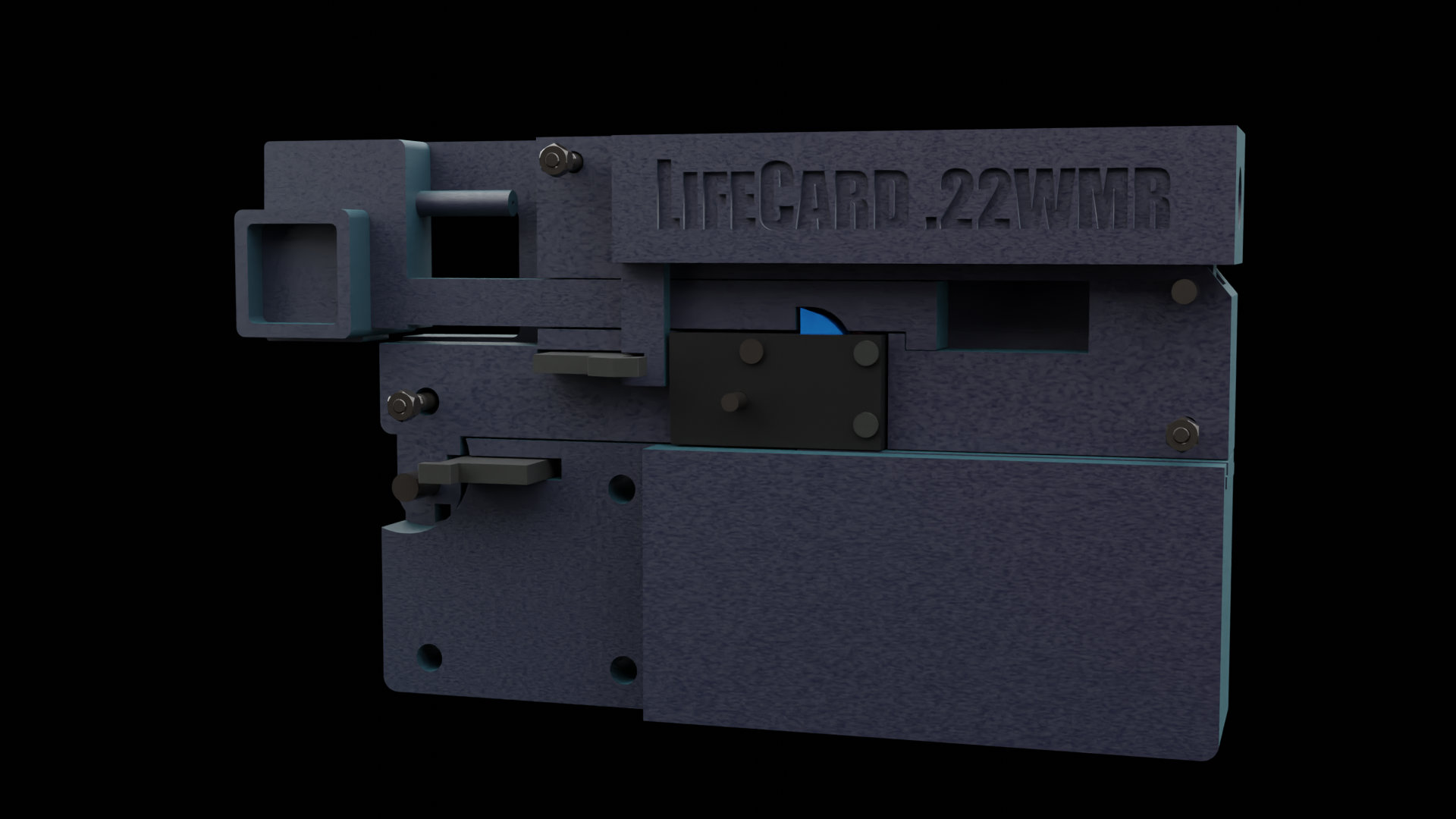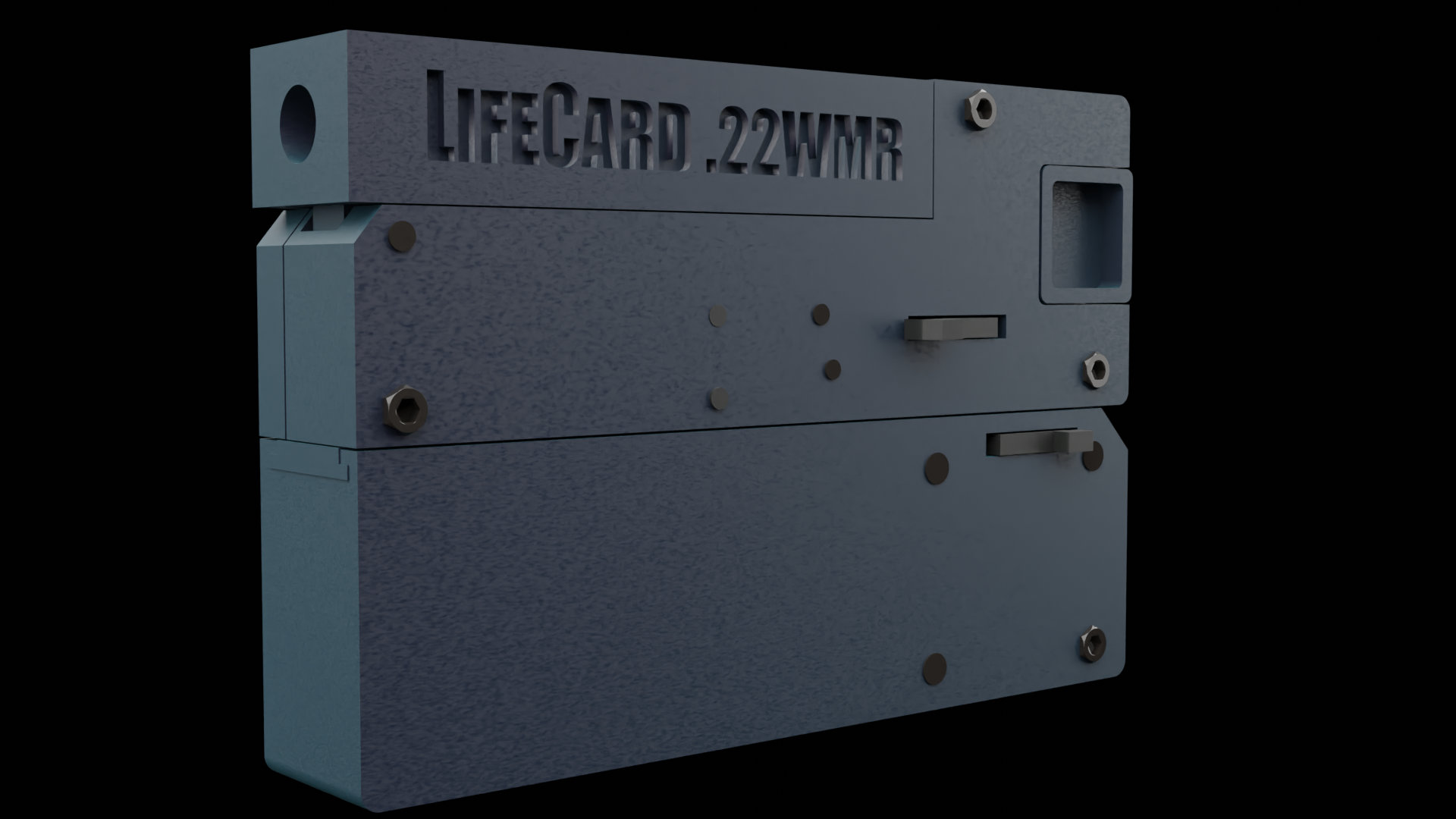The LifeCard V2 22wmr is a compact, folding, single-shot firearm inspired by the original LifeCard design—reimagined for 3D printing with a fully functional mechanism. This version features a precision-upgraded trigger system for smoother operation, enhanced safety, and better overall reliability.